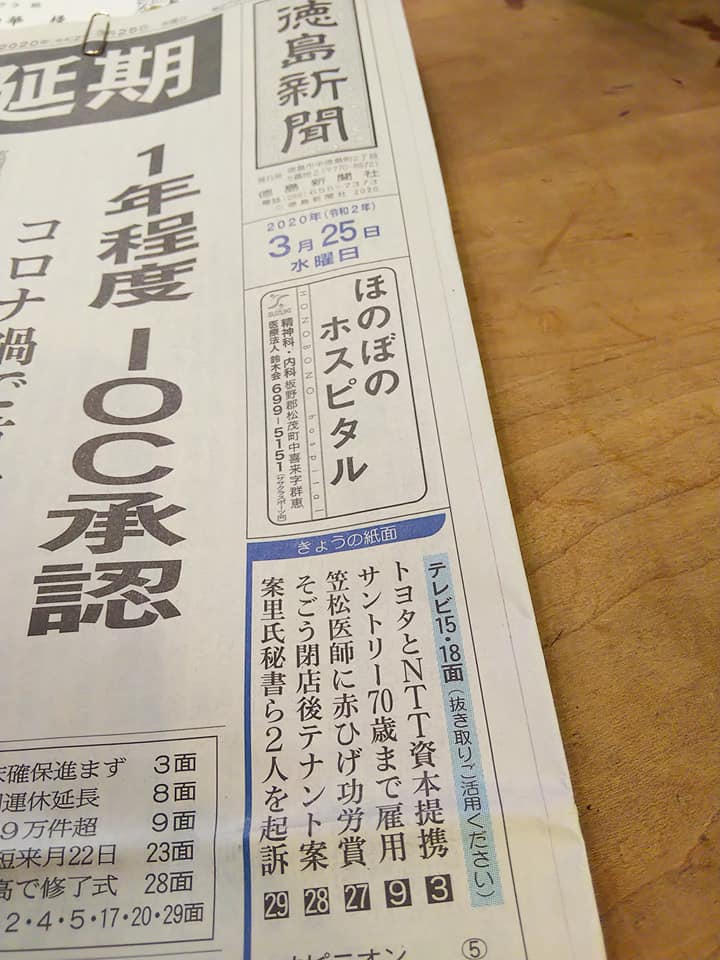 3月25日の徳島新聞朝刊にて、
